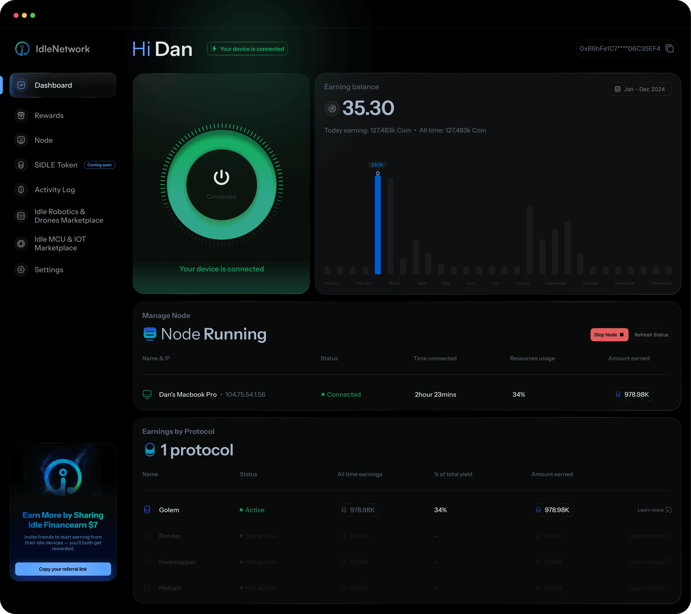 Get the app to start earning just log in and let Idle handle everything.